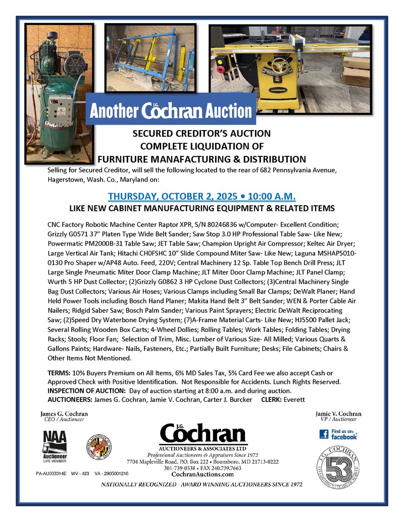 ☛☛☛ ADVANCE AUCTION NOTICE ☚☚☚